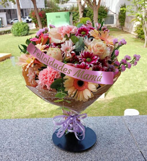 Este no es un ramo común. Es una combinación premium de flores de temporada en tonalidades pastel, rosas vibrantes y toques silvestres que aportan un aire elegante y natural. Es el detalle ideal para esas madres que aman la luz y el color de esta estación.